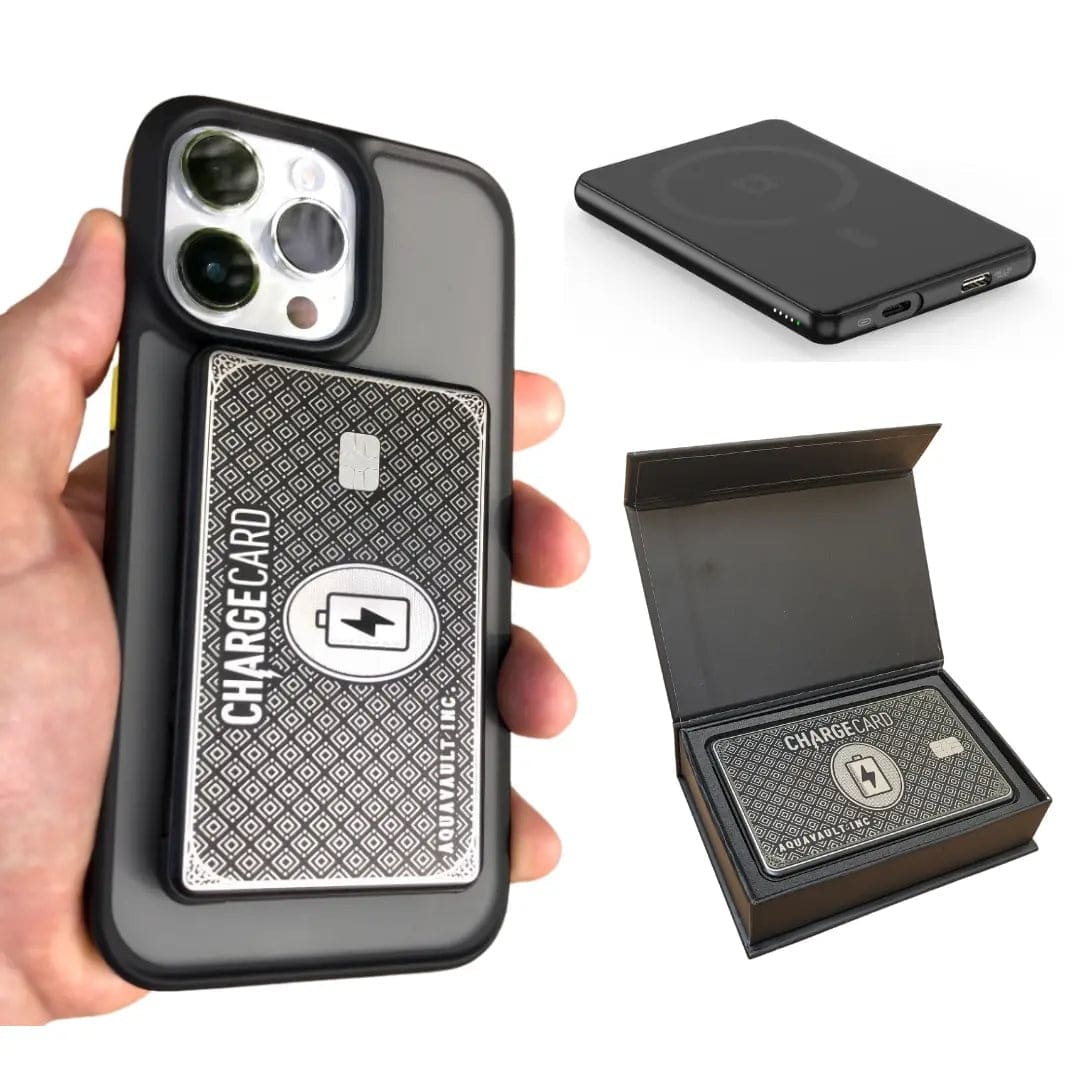 Never let a dead battery slow you down with the AquaVault Wireless ChargeCard, the world’s thinnest portable charger designed for the modern adventurer. This sleek, credit card-sized power bank combines cutting-edge technology with premium design, ensuring your devices stay powered on the go—without the bulk.