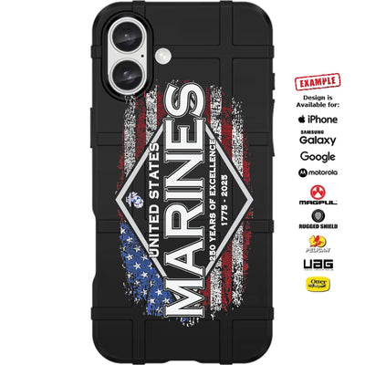 U.S. Marine Corps 250th Birthday Special Edition 2025 US American Flag Custom Printed Case Design for Apple, Samsung, Google & Motorola Phone Models