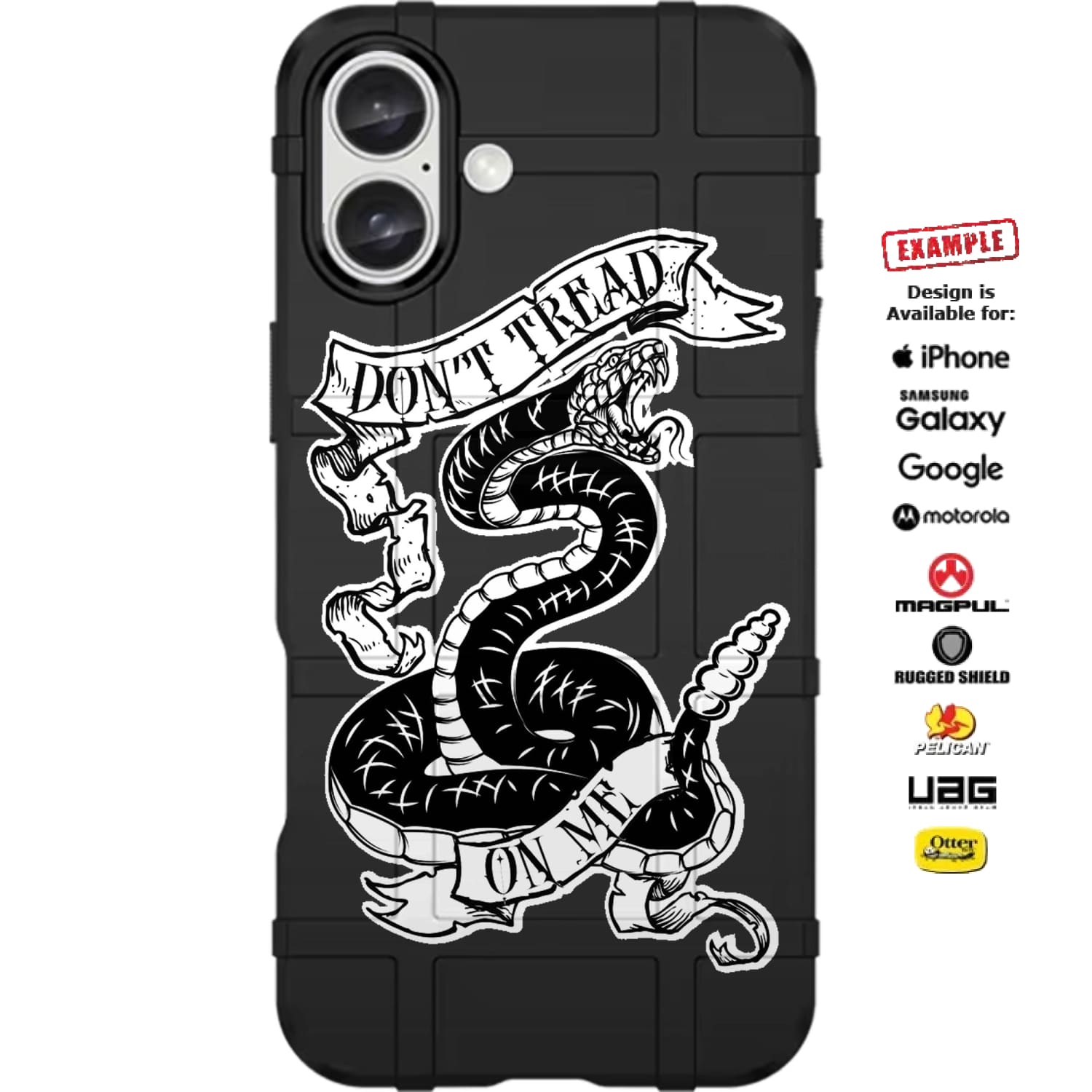 Don't Tread on Me Coiled Snake on Black or Green Custom Printed Case Design for Apple, Samsung, Google & Motorola Phone Models