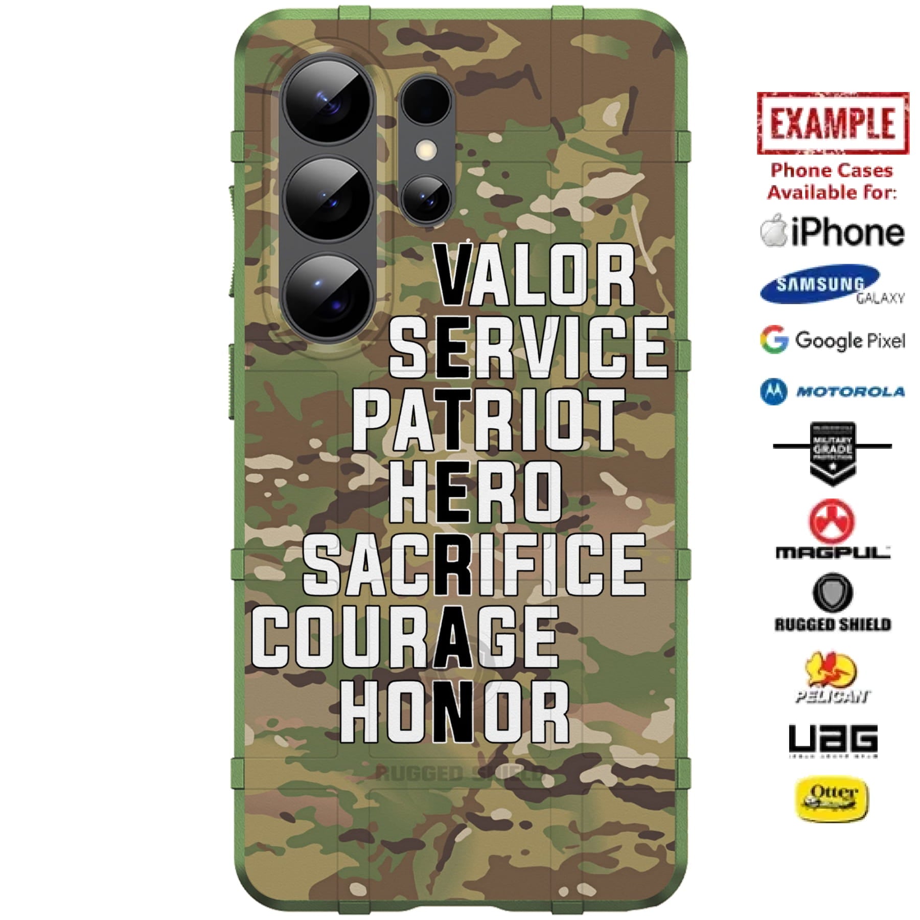 Our Custom Direct UV-printed cases at EGO Tactical are created using name-brand cases such as Magpul Industries Field or Bump Cases, Otterbox Symmetry or Symmetry Plus cases, UAG Urban Armor Gear Plasma & Pathfinder Cases, Pelican Adventurer or Ranger Cases, and Rugged Shield branded cases, which are all 100% authentic and Printed in the USA. Using our 7-step "Direct-to-Case" UV-Laser Color Printing process, we are able to produce stunning custom-printed cases based on the case that you choose.