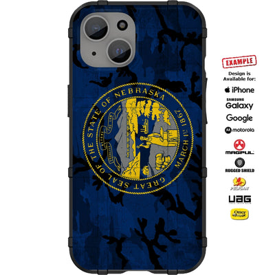 Camouflage Nebraska State Flag Custom Printed Case Design for Apple, Samsung, Google & Motorola Phone Models