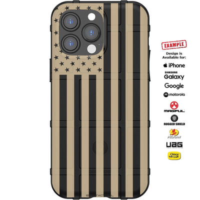 FDE Tan US American Flag on Black Custom Printed Case Design for Apple, Samsung, Google & Motorola Phone Models