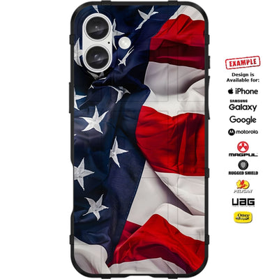 US American Flag Waving Custom Printed Case Design for Apple, Samsung, Google & Motorola Phone Models