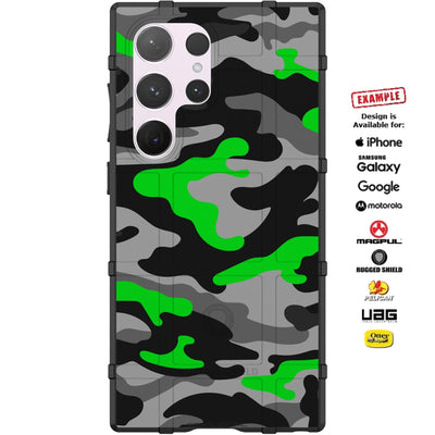 Green Black Woodland Camouflage Custom Printed Case Design for Apple, Samsung, Google & Motorola Phone Models
