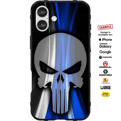 Thin Blue Line Police Ghost Punisher Custom Printed Case Design for Apple, Samsung, Google & Motorola Phone Models