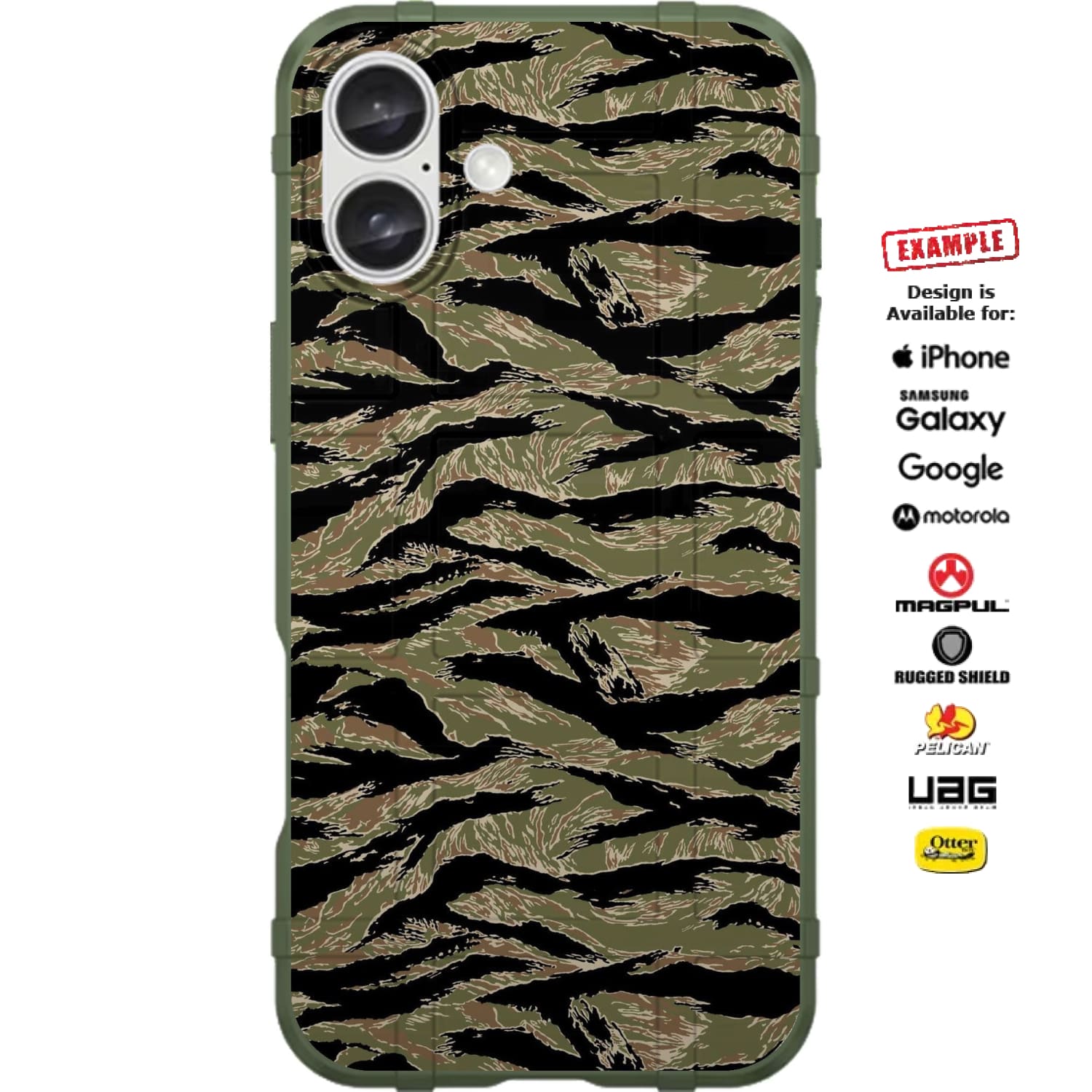 Our Custom Direct UV-printed cases at EGO Tactical are created using name-brand cases such as Magpul Industries Field or Bump Cases, Otterbox Symmetry or Symmetry Plus cases, UAG Urban Armor Gear Plasma & Pathfinder Cases, Pelican Adventurer or Ranger Cases, and Rugged Shield branded cases, which are all 100% authentic and Printed in the USA. Using our 7-step "Direct-to-Case" UV-Laser Color Printing process, we are able to produce stunning custom-printed cases based on the case that you choose.
